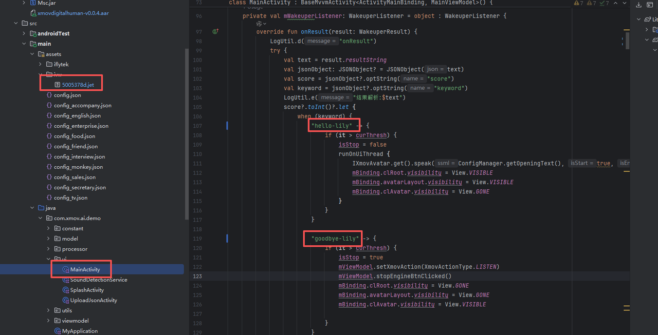 1. 解压讯飞唤醒sdk的压缩包,在项目源码中替换 ivw 中的 xxx.jet 文件